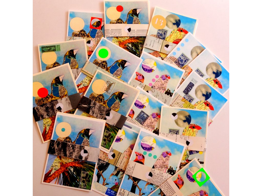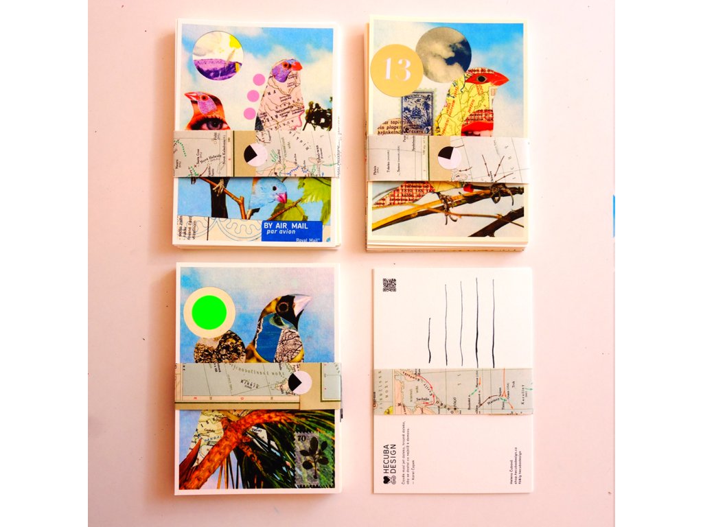 Bird postcards from maps... format 105x148 mm on beautiful paper Arena by Fedrigoni / Each postcard is a little bit original, because each is accompanied by a glued framgment / sets are hand packed