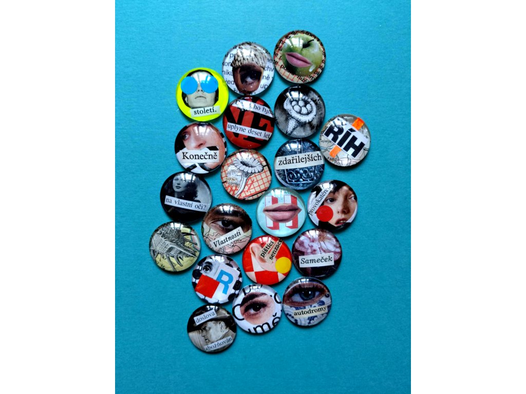 Malý originální magnet s analogovou koláží 25 mm / Small original magnet with analogue collage 25 mm